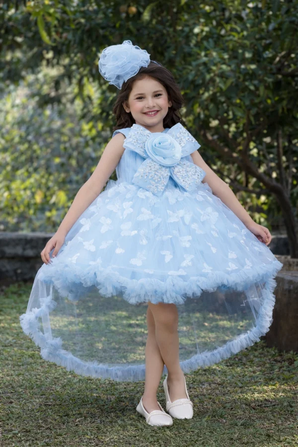 Girls Cute Party Wear Dress with Floral Detail & Puff Sleeves